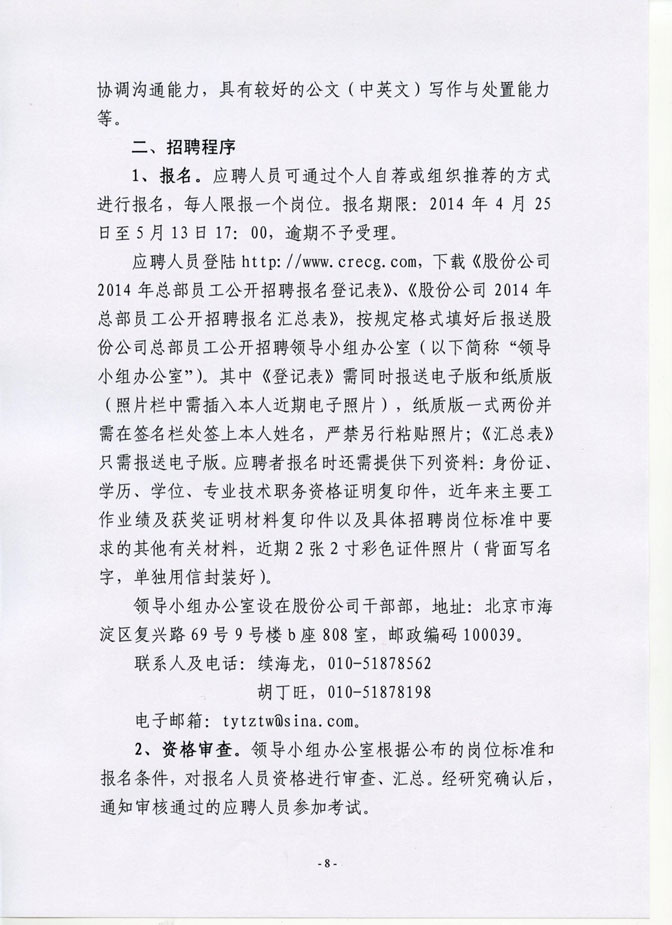 关于做好股份公司总部公开招聘工作人员的通知