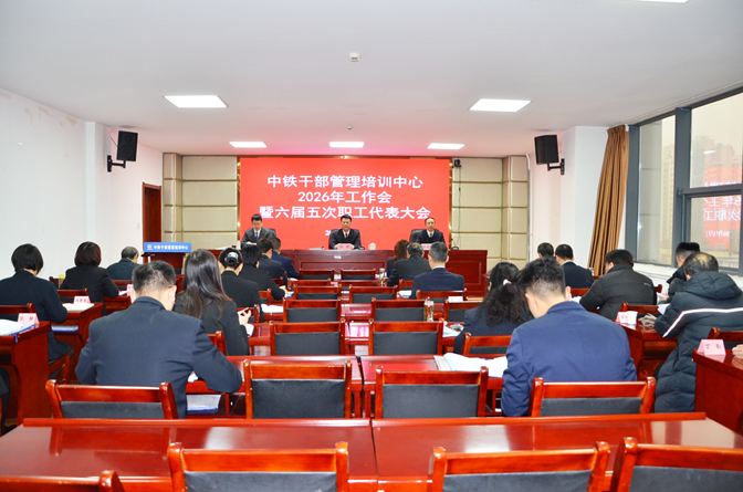 1月29日至30日,中铁干部管理培训中心2026年工作会议暨六届五次职工代表大会胜利召开。大会坚持以习近平新时代中国特色社会主义思想为指导,深入学习贯彻党的二十大和二十届历届全会、全面落实中铁国资党委和中铁国资决策部署,总结2025年和“十四五”工作成绩,分析总体形势,部署2026年重点工作任务,团结带领广大干部职工凝心聚力、笃行实干,奋力开创中心“十五五”事业发展新局面。 中心党委书记佟明出席会议并讲话,主任、党委副书记朱新峰作工作报告,会议由中心纪委书记、工会主席杨鲲主持。